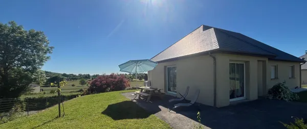 Ce gîte de plain-pied, moderne et climatisé, peut héberger jusqu’à 5 personnes. Il dispose d’une grande pièce à vivre lumineuse, de 3 chambres indépendantes, d’un jardin avec terrasse et d’un garage fermé en sous-sol pour voitures, motos ou vélos.