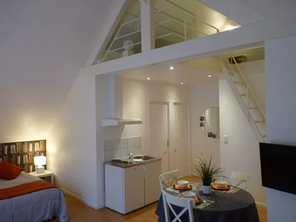 Dans maison contemporaine, un studio jusqu’à 5 pers équipé de micro-ondes, frigo, cafetières, bouilloire